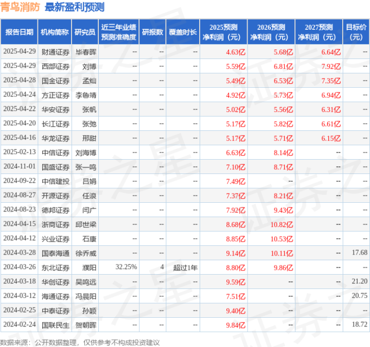 最新盈利预测明细如下: